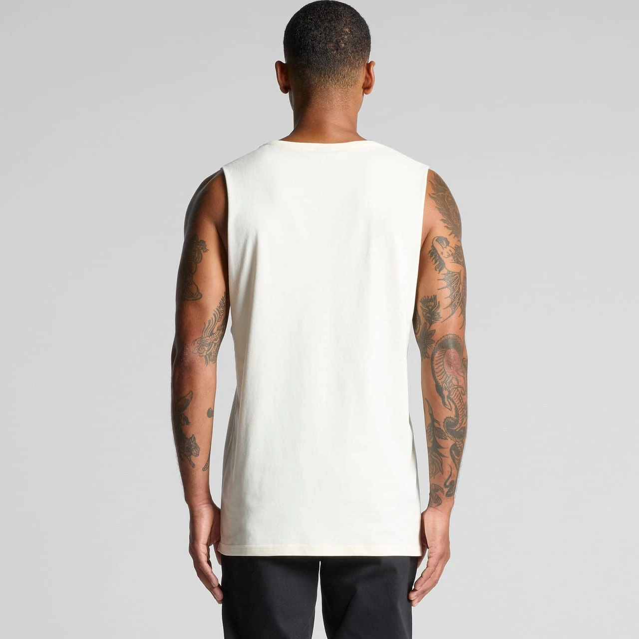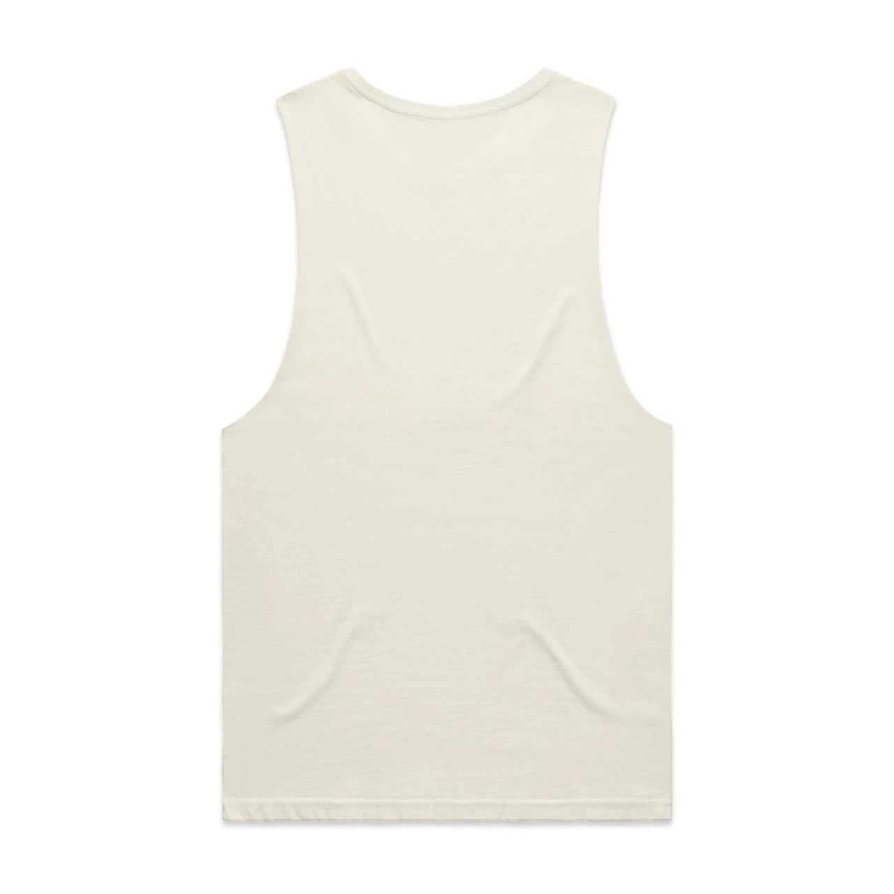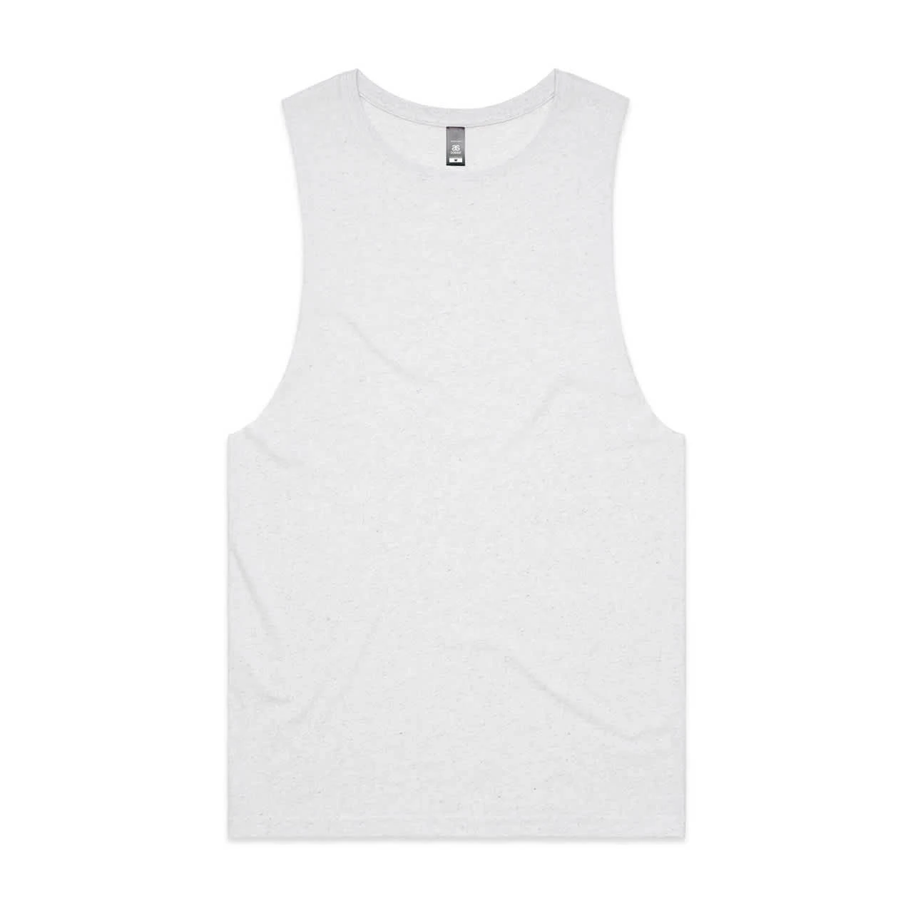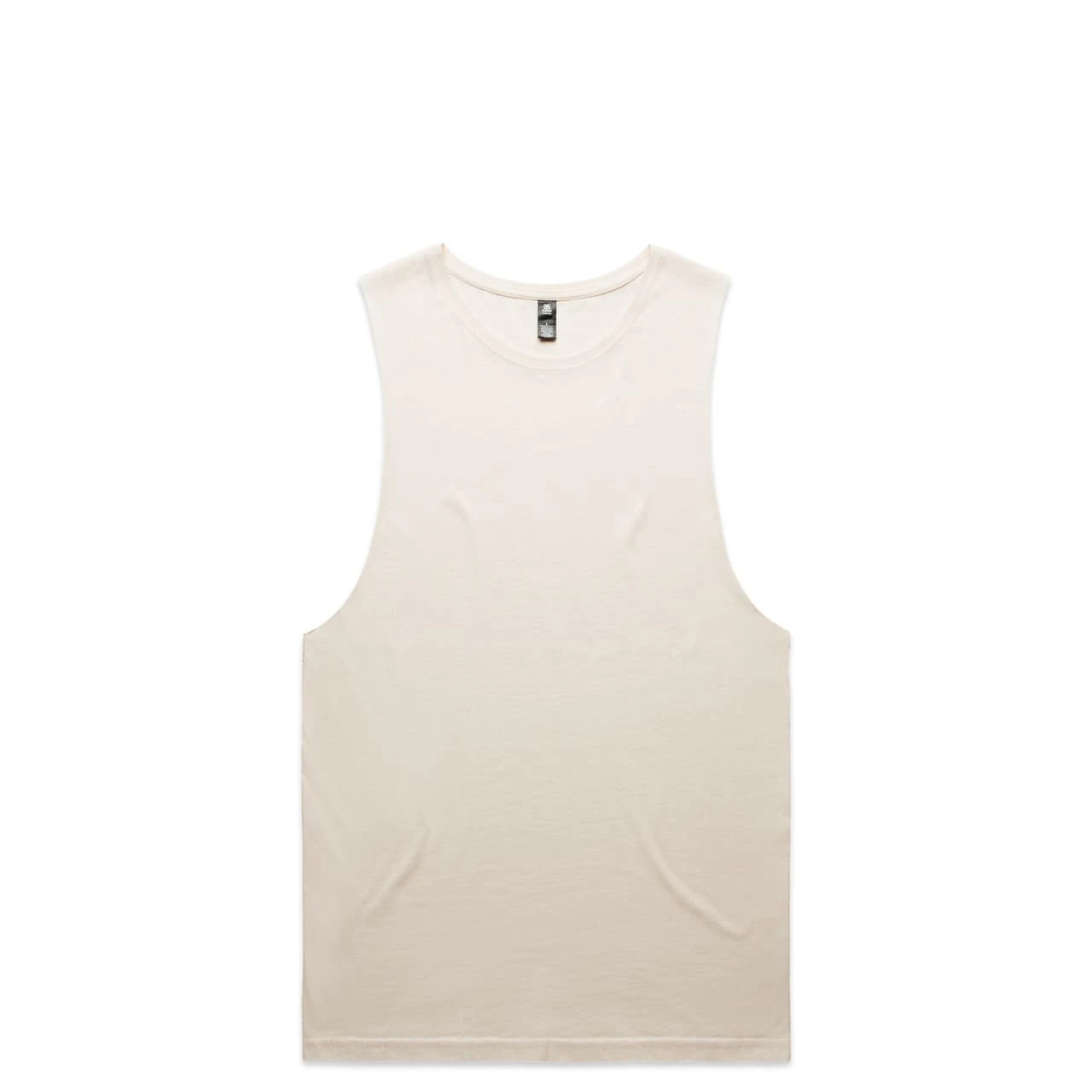 Sleeveless tank, raw armhole edges, neck ribbing, double needle bottom hem, preshrunk to minimise shrinkage