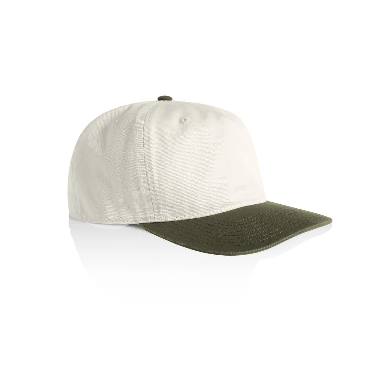 Introducing the AS Colour Class Two-Tone Cap: A lightweight, mid-profile five-panel cap crafted from 100% cotton. Featuring a stylish contrast dome, flat peak, plastic snapback closure, and tonal eyelets for ventilation. One size fits all, with the conven