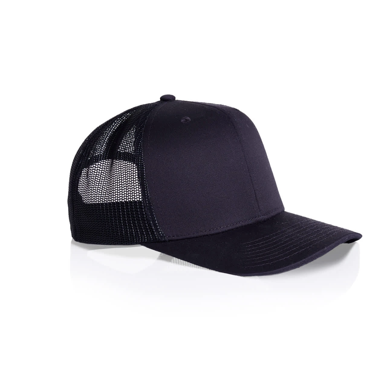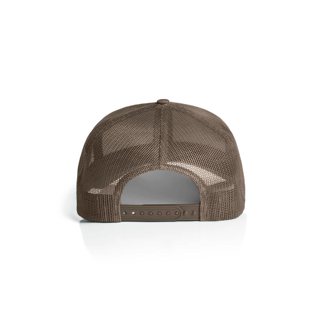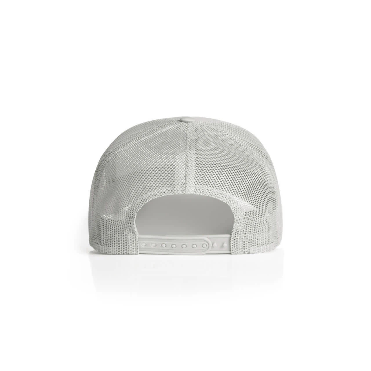 Snapback cap, shallow curved peak, tonal mesh back, plastic snapback, tonal under-peak lining One size fits all Tear-out AS Colour label