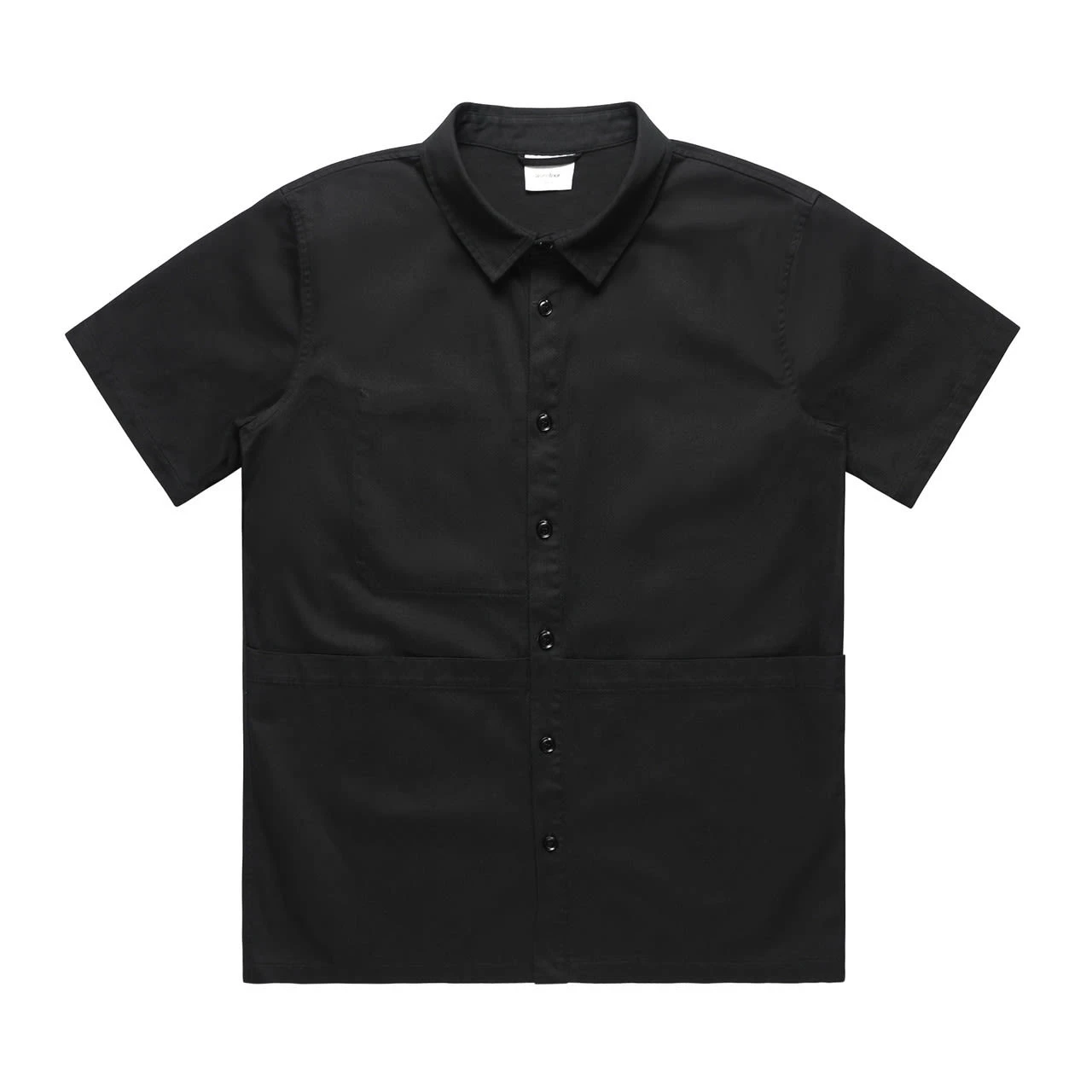 Internal chest pocket, 2 X pouch pockets, collared shirt, unlined, corozo buttons to close