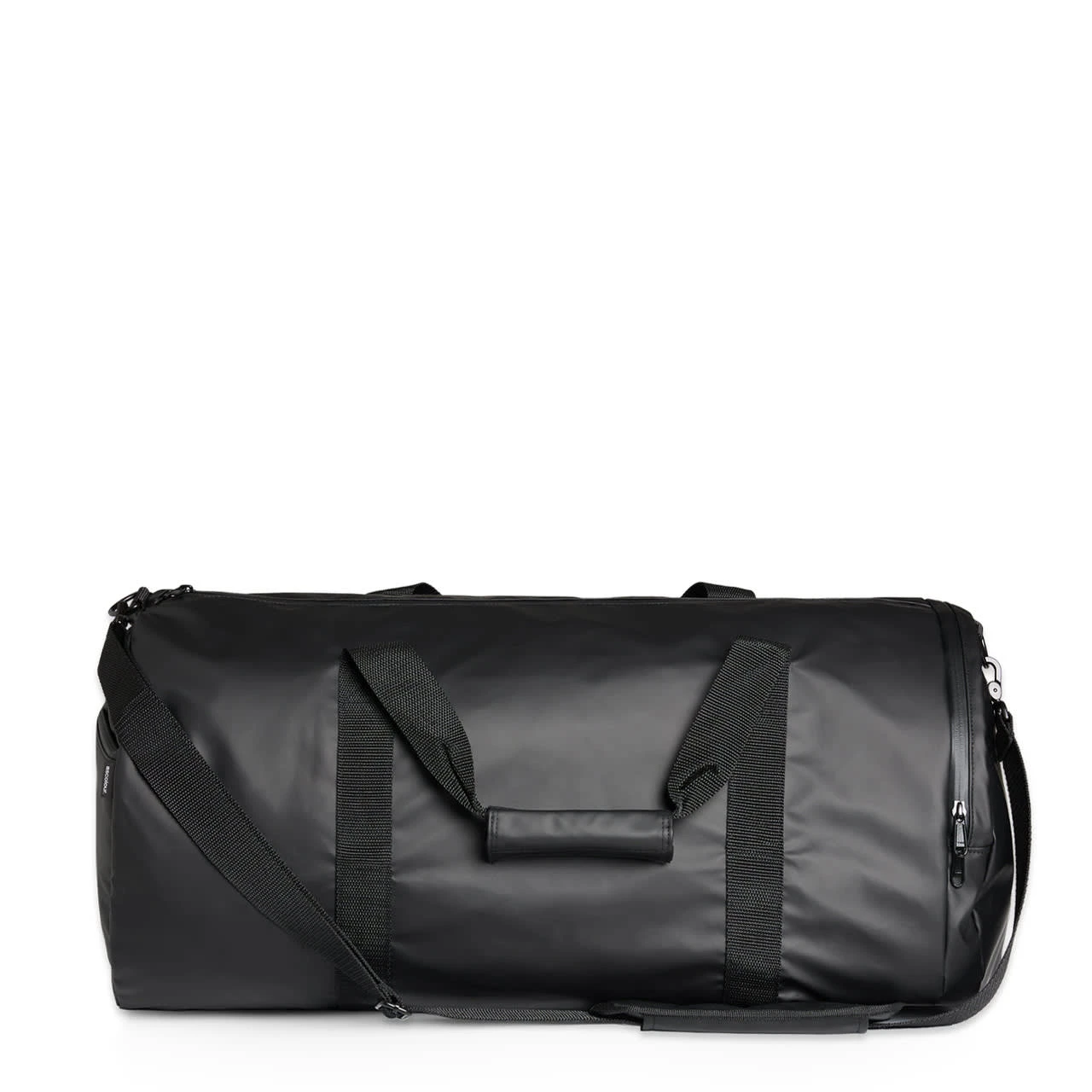 One large main compartment with a small internal YKK zipped compartment, one external YKK zipped shoe compartment, aqua guard zippers on external accesses, reinforced adjustable shoulder strap and handles 64cm x 34cm, 70L capacity