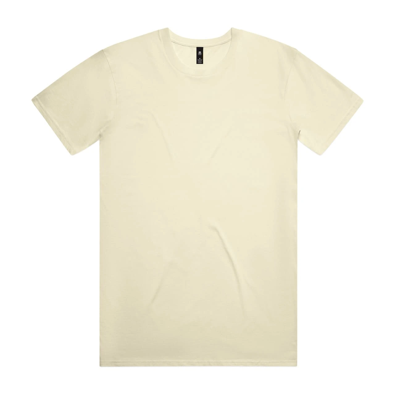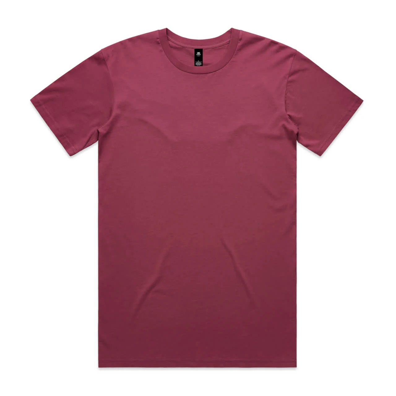 The AS Colour Staple Tee. Enduring comfort in a regular fit, crafted from 180 GSM 100% combed cotton. Featuring neck ribbing, side seams, and double needle hems for durability and minimal shrinkage, it's a timeless choice for comfort and style. Available