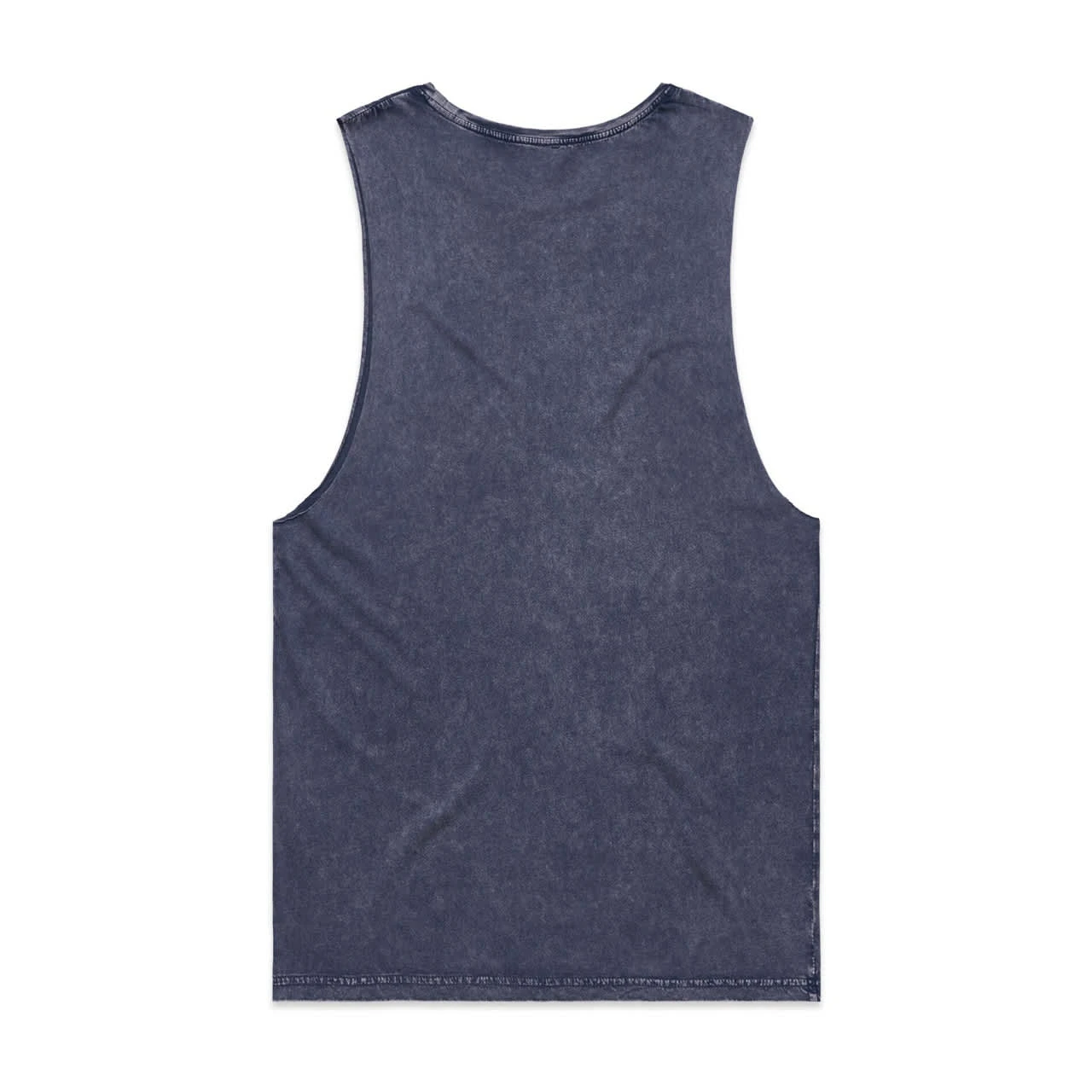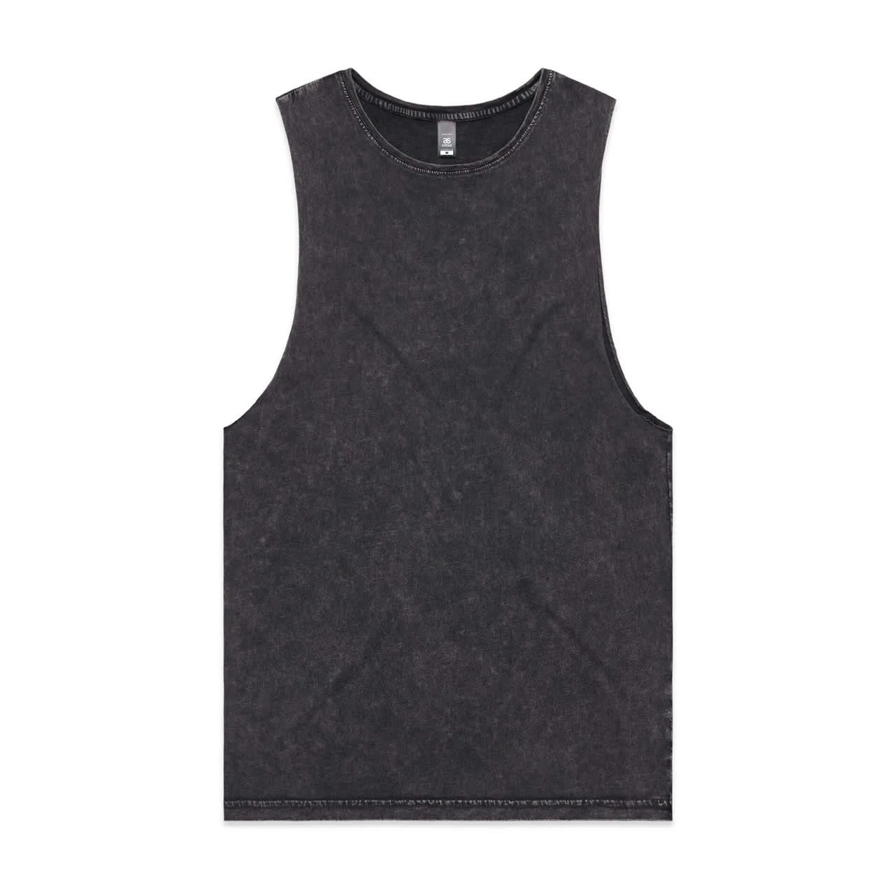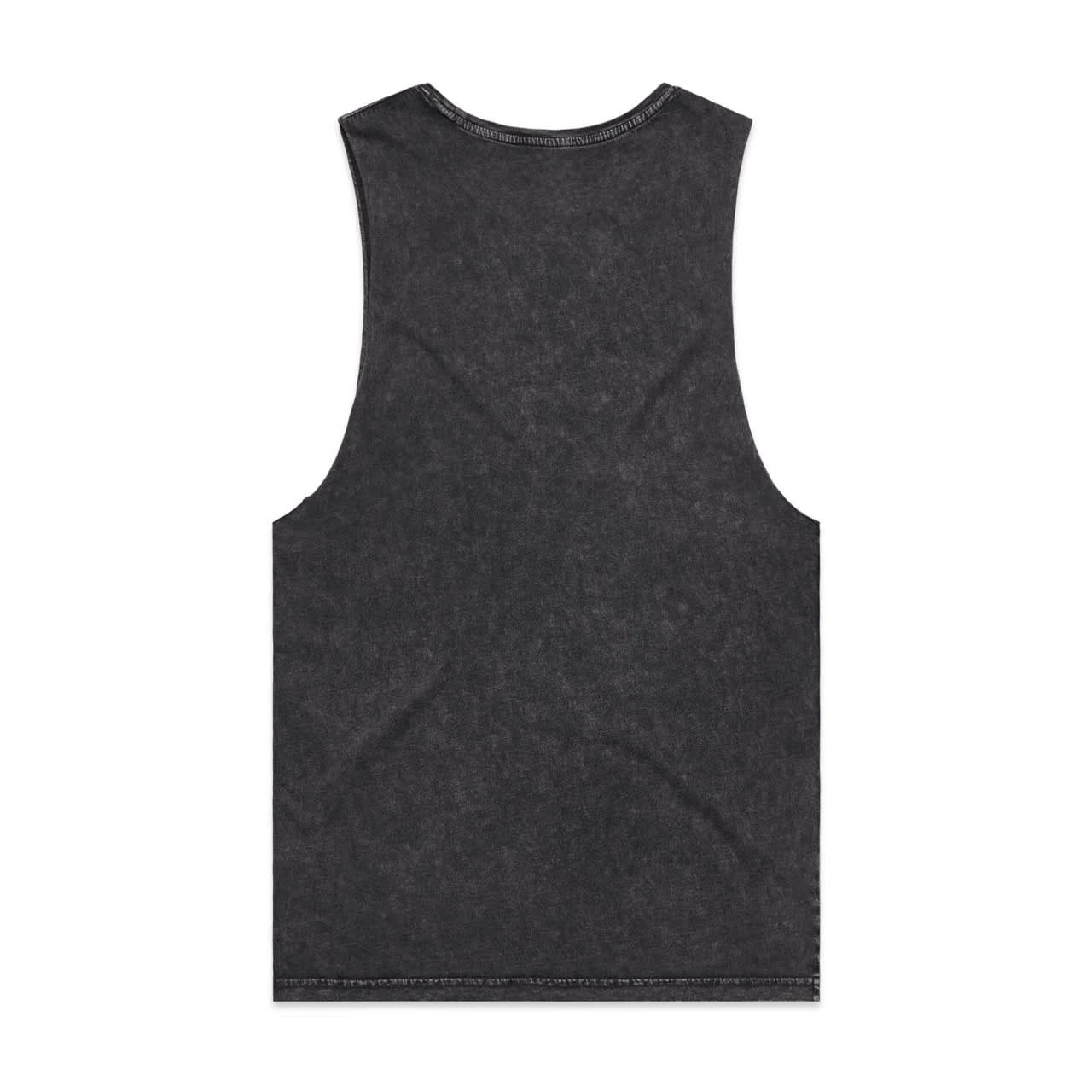 Sleeveless tank, raw armhole edges, stone wash finish with a worn look, ribbed crew neck, shoulder to shoulder tape, double needle bottom hem, preshrunk to minimise shrinkage