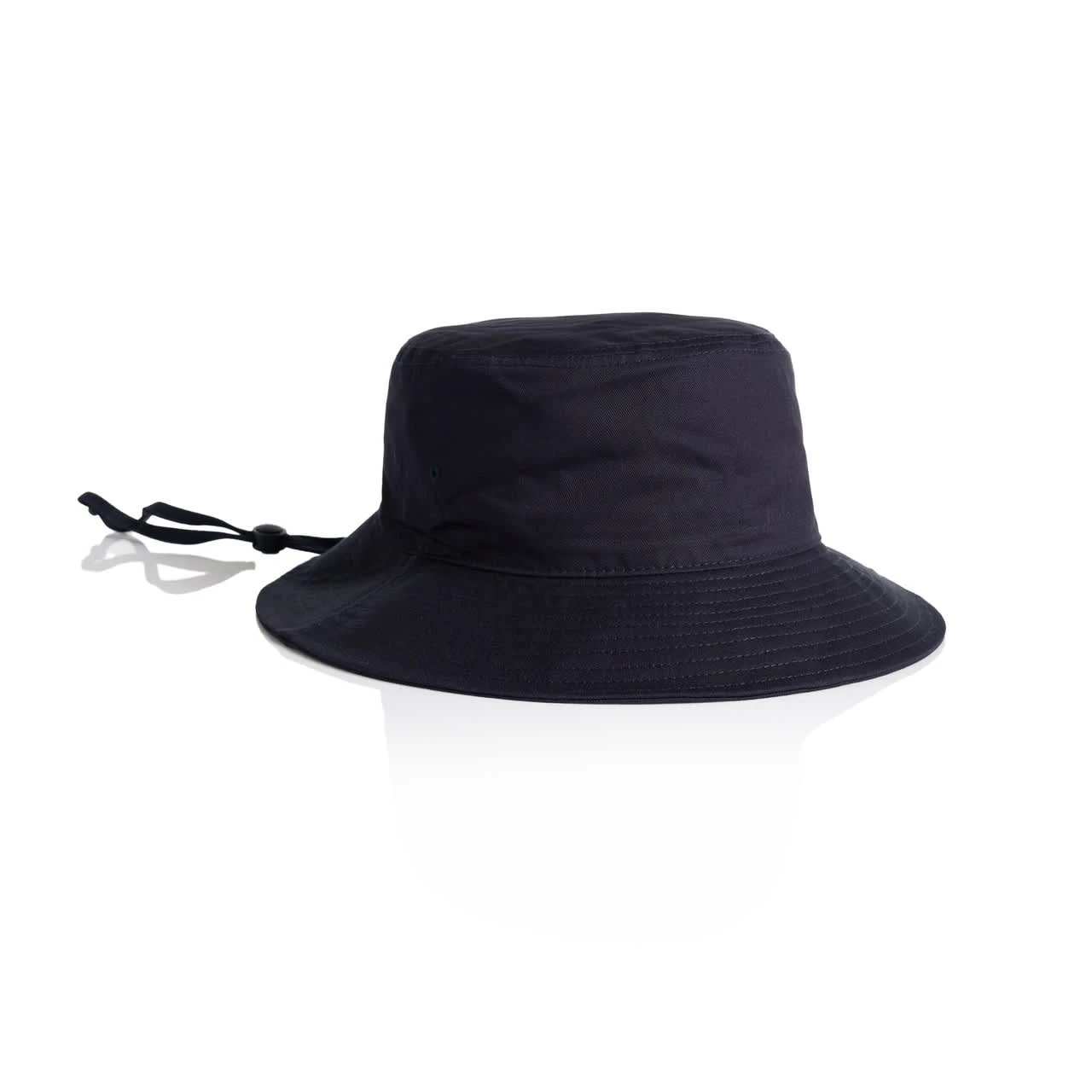 Introducing the AS Colour Wide Brim Bucket Hat, crafted from light-mid weight 100% cotton for comfort. It features a reinforced large brim with stitching detail, side eyelets for ventilation, and a self-fabric chin strap with a plastic adjustable toggle.