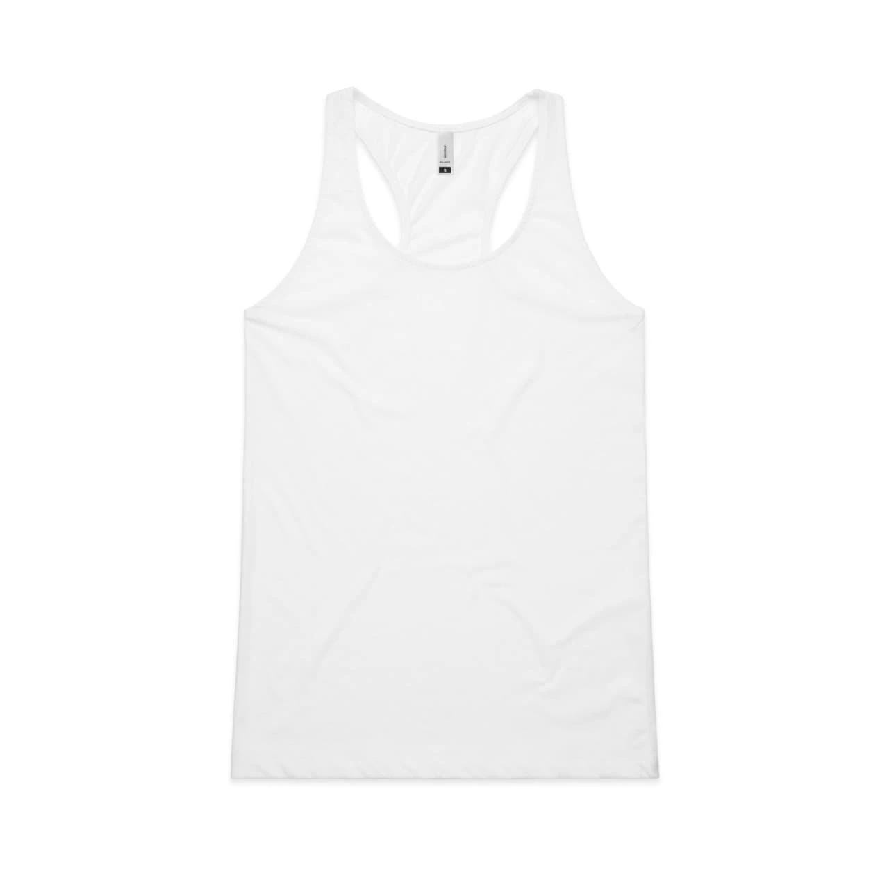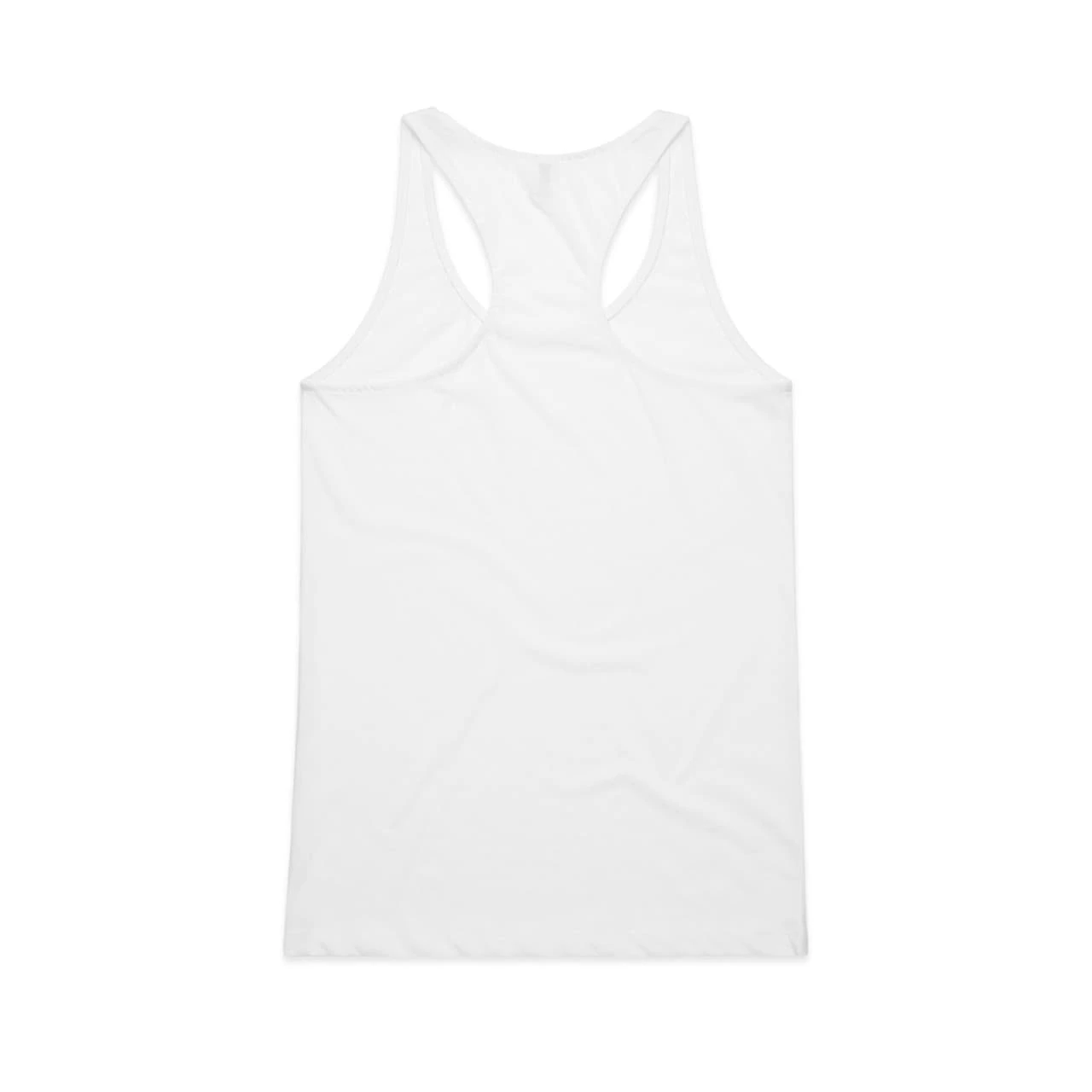 Narrow racer back detail, self-fabric facing at neck and armholes, double needle bottom hem, preshrunk to minimise shrinkage