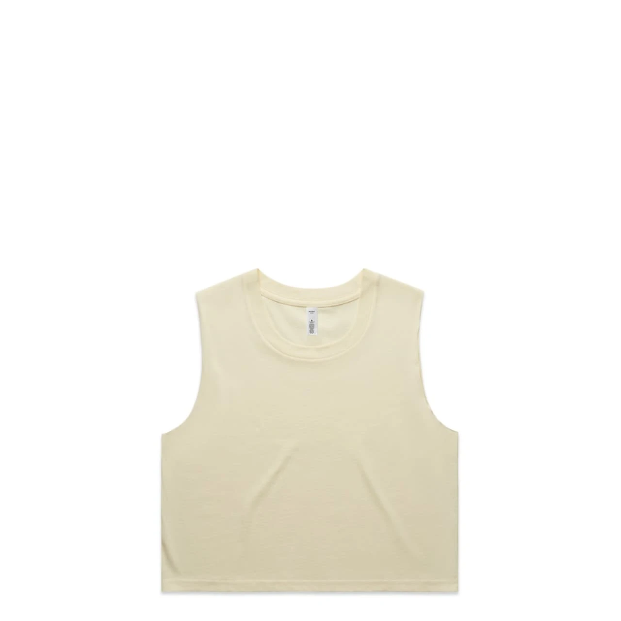 Short body, sleeveless tank, raw armhole edges, neck ribbing, double needle hems, side seamed, preshrunk to minimise shrinkage