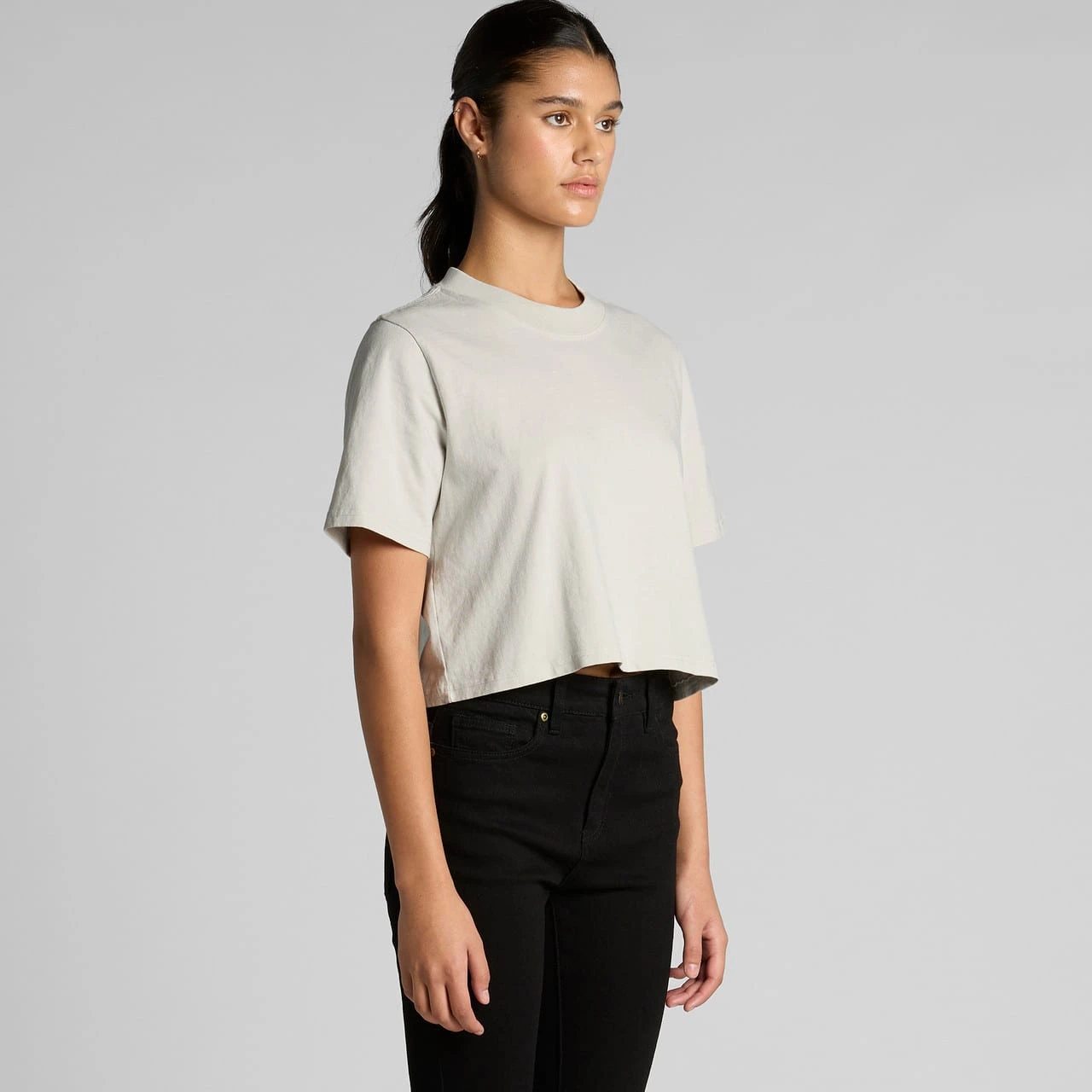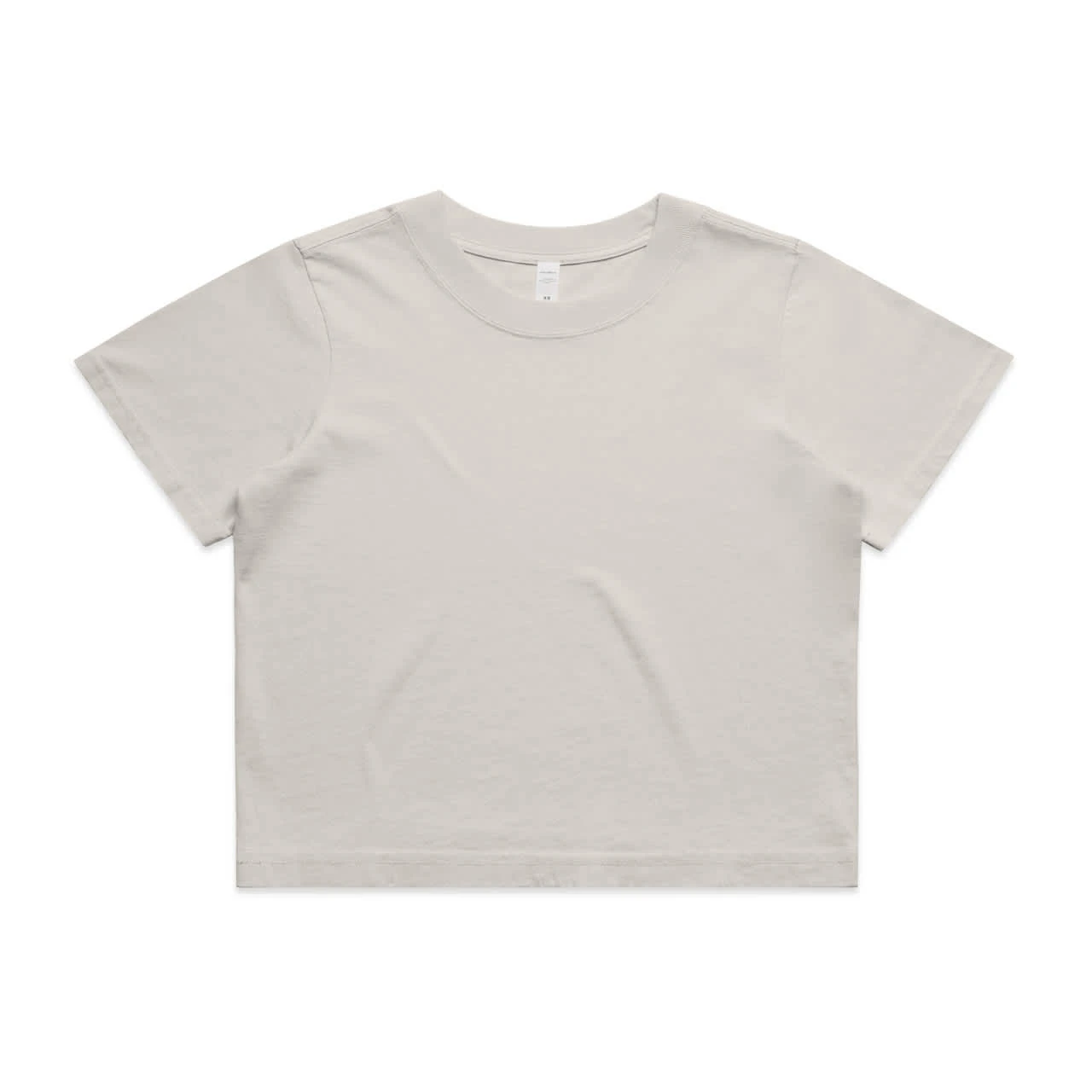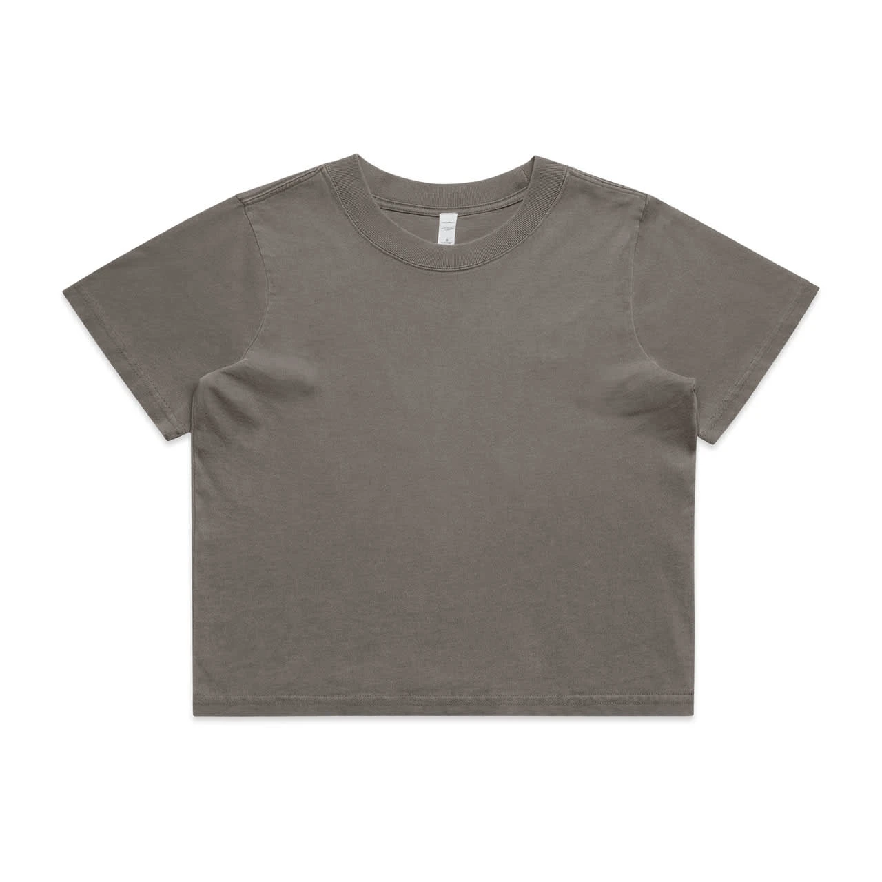 The AS Colour Womens' Heavy Faded Crop Tee, crafted from 100% carded cotton for durability and comfort. With a heavy 240 GSM weight and garment dyed finish, it features a cropped relaxed fit, shoulder to shoulder tape, and twin-stitched wide neck ribbing.