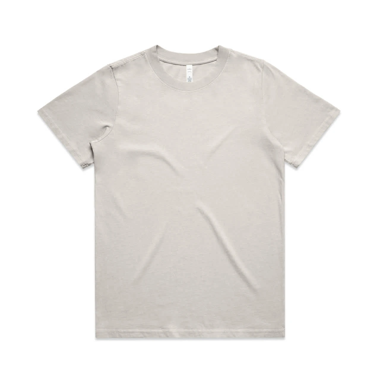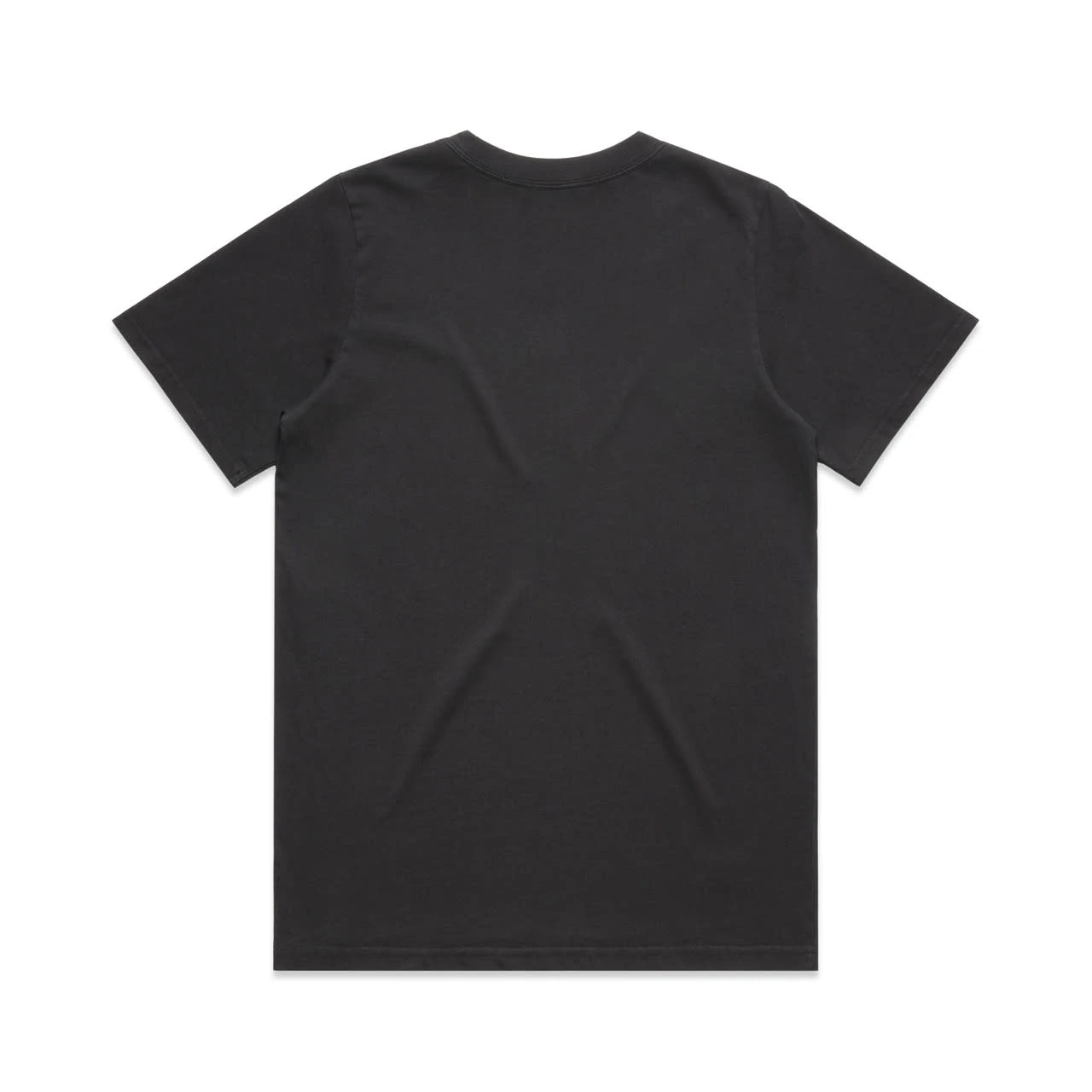 The AS Colour Women's Heavy Faded Tee, crafted from 100% carded cotton for durability and comfort. With a heavy 240 GSM weight and garment dyed finish, it features a relaxed fit, shoulder to shoulder tape, and twin-stitched wide neck ribbing. Built to las