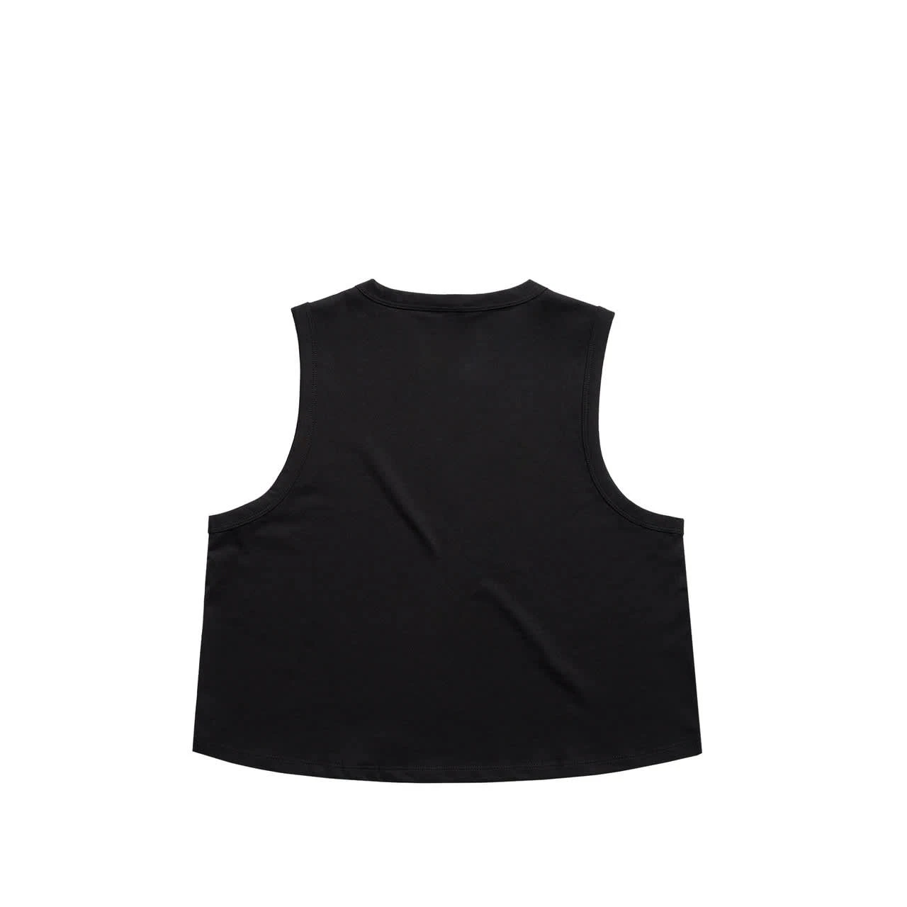 Wide binding at neck and armholes, side seamed, shoulder to shoulder tape, double needle hems
