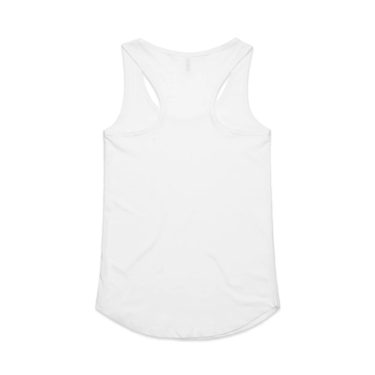 Curved hem, racer back detail, self-fabric binding at neck and armholes, double needle bottom hem, preshrunk to minimise shrinkage